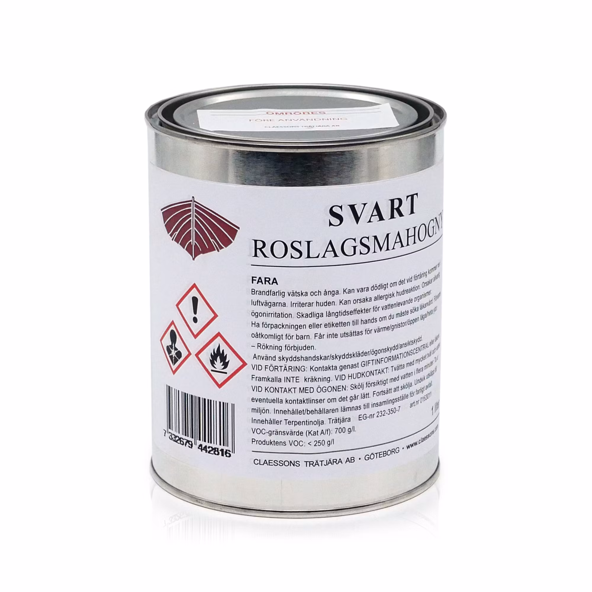 Svart Roslagsmahogny 265 kr Storlek 1l 5l I lager. Lägg i korgen Lagersaldo: Artikelnummer: 36 Produktbeskrivning Claessons Svart Roslagsmahogny är en blandning av furutjära, rå kallpressad linolja och balsamterpentin pigmenterad med jänoxidsvart.Åtgången är ca 6-10 m2 per liter.